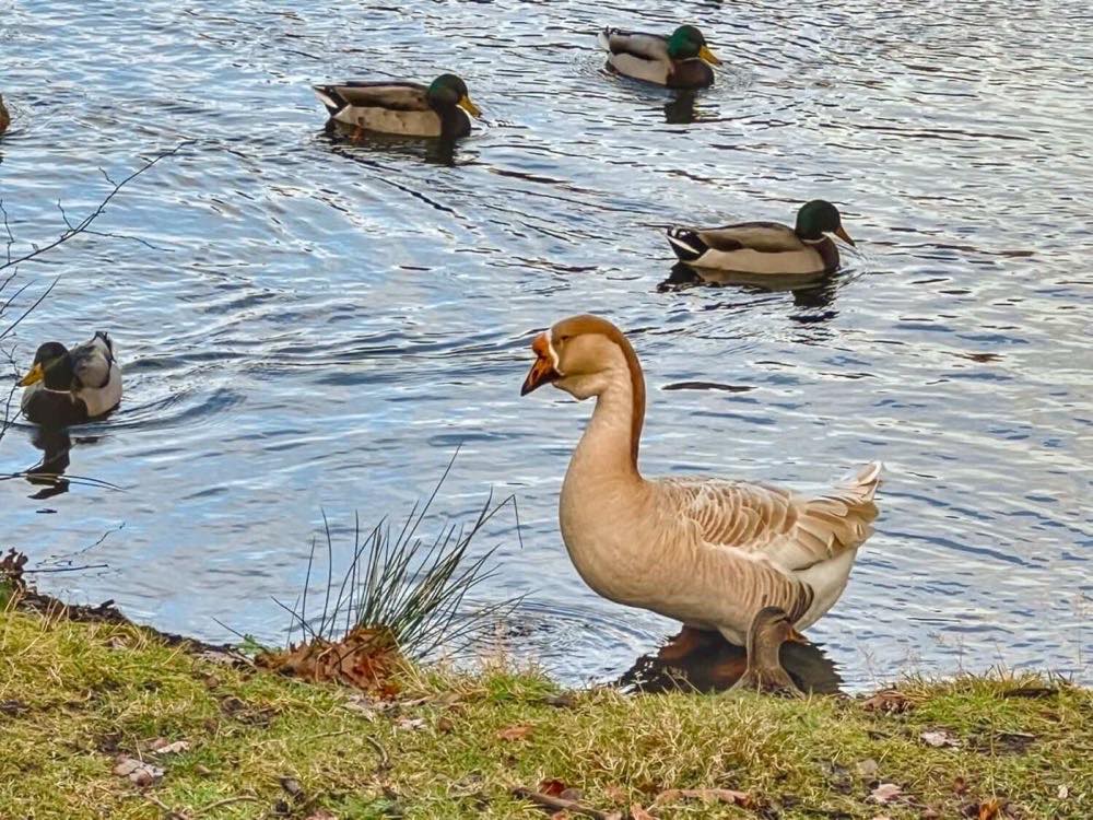 Immerse yourself in nature's symphony as vibrant songbirds serenade you with their melodious tunes. Delight in the graceful ballet of dragonflies and damselflies, tracing intricate patterns across the glistening waters. Make sure to keep an eye out for Gary the Goose who loves posing for pictures.